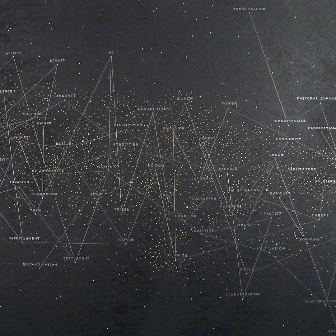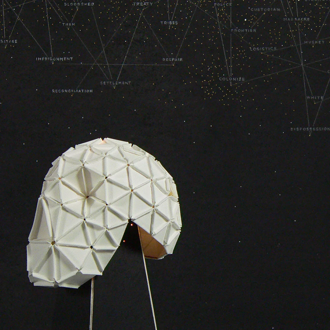 This artwork is exhibited at Three O’Clock Gallery on the traditional country of the Wurundjeri people, and was completed with cultural consultation from Wurundjeri Tribe Elders. It’s creation was inspired by artist Fred Fowler's vision to create 20,000 skulls to create a tangible memorial to Aboriginal lives lost in the Frontier Wars.